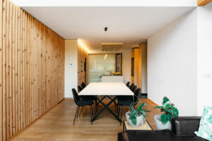De klant heeft deze compacte bestaande halfopen bebouwing 100% zelf verbouwd tot -beter als passief- niveau. Met zeer dikke isolatiepakketten in daken en wanden, een groot raam met (vanzelfsprekend) drievoudige beglazing aan de zuidzijde. Qua technieken is de woning voorzien van een lucht-waterwarmtepomp met zonneboiler. PV-panelen met batterijen. En een balansventilatie met warmterecuperatie, klaar voor de toekomst dus…